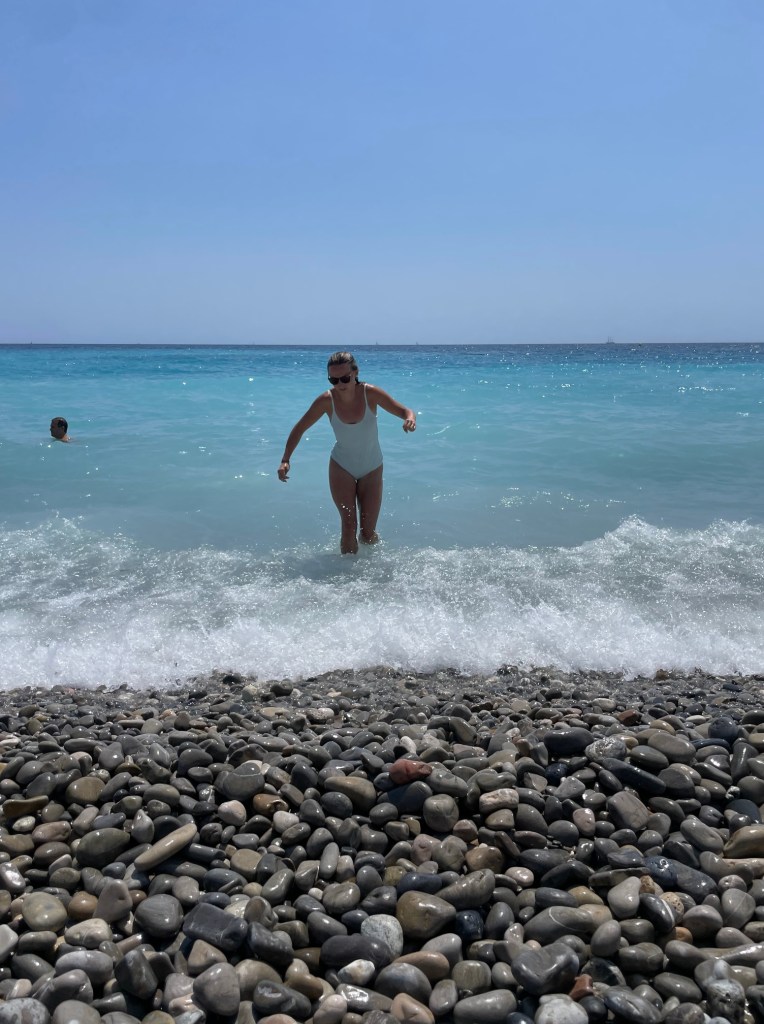 Nice, on the other hand, I have been to before and have done plenty of looking into, to make sure we get to do what we want in the few days we get to spend there. Nice is known for being the central town in the French riviera and offering easy access to several other cities such as Monaco, Villa Frenche Sur Mer, Eze, and Cannes- all with their own unique perks. If you’re up for a walk you can even walk along the coastline to the nearby towns as well, some of which have some slightly sandier beaches if that is your thing. The beach in Nice is huge, has a large public, free access portion, has stunning views of the beautiful blue waters, but is rocky. If you have some sandals to wear and a padded towel to lay on you will be fine. We spent most of our time in the water last summer anyway (which I will say could be difficult to get out of at times, we will be bringing shoes to wear this time). This time we will also spend one of the days at a private beach club with beds, drinks, and food so that we can enjoy a little more time on the water. There are several right in the heart of nice that will all be absolutely fine, with prices ranging from 25 euros to 150, but we are going to walk down the promenade a bit to the Regence Plague by Radison Blu. The reasons being that we did not venture down the promenade much last summer, and this place has spectacular reviews on their food and hospitality. Most of the beach clubs will have a snacking menu and drinks that you can enjoy at your bed, and then will allow you to make a lunch reservation at their restaurant as well.